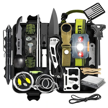 Ce kit de survie est un concentré de 18 équipements essentiels, rassemblés dans une boîte compacte, solide et légère. Idéal à garder dans une voiture, un sac à dos, un tiroir à la maison ou une valise d’urgence.