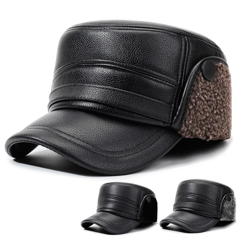 Casquette militaire en cuir PU vintage conçue pour affronter l'hiver avec style. Sa protection auditive...