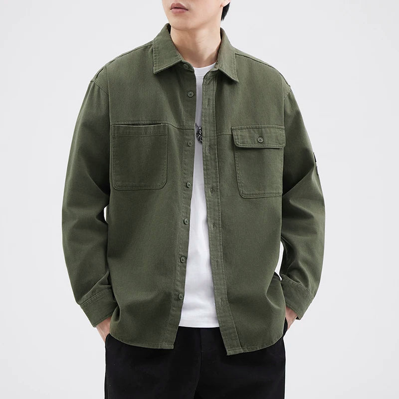 Chemise militaire homme au style vintage, parfaite pour le printemps et l'automne. Conçue en coton...