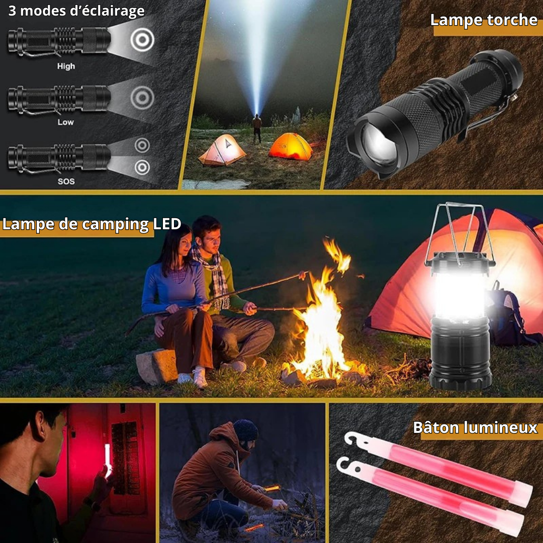 Ce sac de survie complet 172-en-1 est l’un des plus aboutis pour affronter toutes les situations : catastrophe naturelle, randonnée extrême, tremblement de terre, évacuation d’urgence, aventure longue durée.