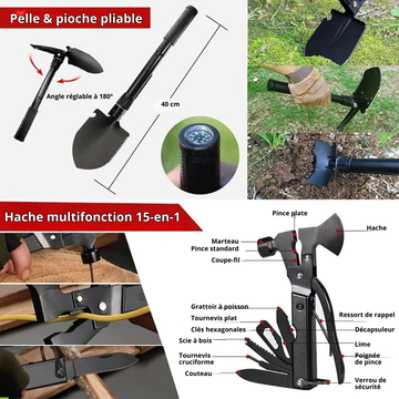 Grâce à son sac à dos tactique 50 litres et ses équipements professionnels, ce kit de survie complet assure autonomie, sécurité, soins et confort en situation critique.